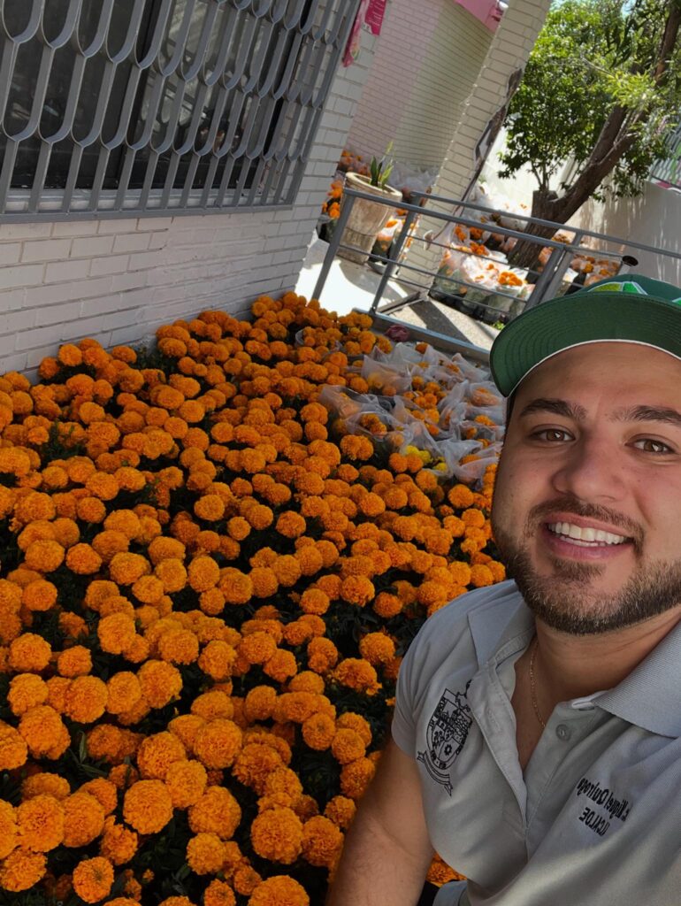 Durante el mismo día, el alcalde también realizó la entrega de cientos de flores de cempasúchil a la comunidad, gesto simbólico que llenó de color las ofrendas y los hogares de Ciénega de Flores.