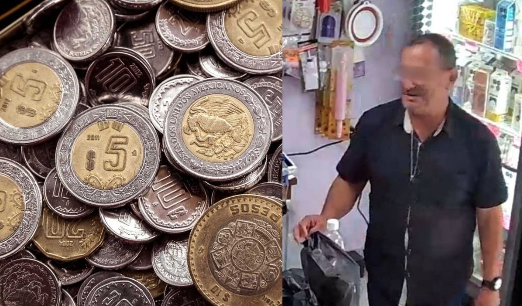 De acuerdo con testimonios, el hombre —de entre 40 y 50 años— llega al mostrador y pregunta si pueden cambiarle monedas por billetes porque trae mucha “feria”.