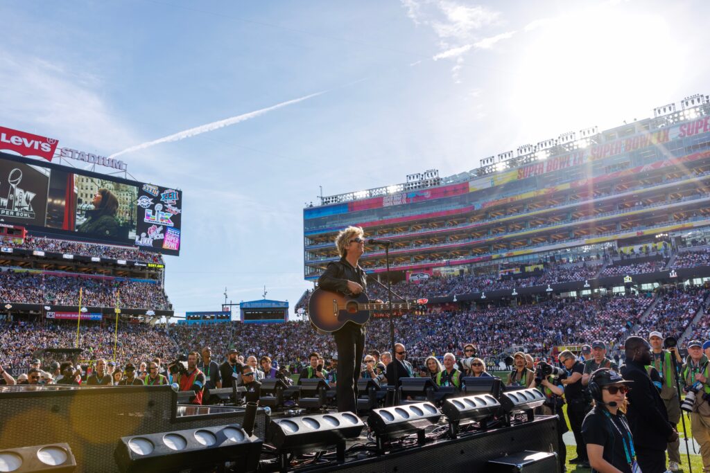 Previo al partido entre Seahawks y Patriots, Green Day inauguró el evento musical con “Holiday”, seguida de “Boulevard of Broken Dreams” y “American Idiot”.