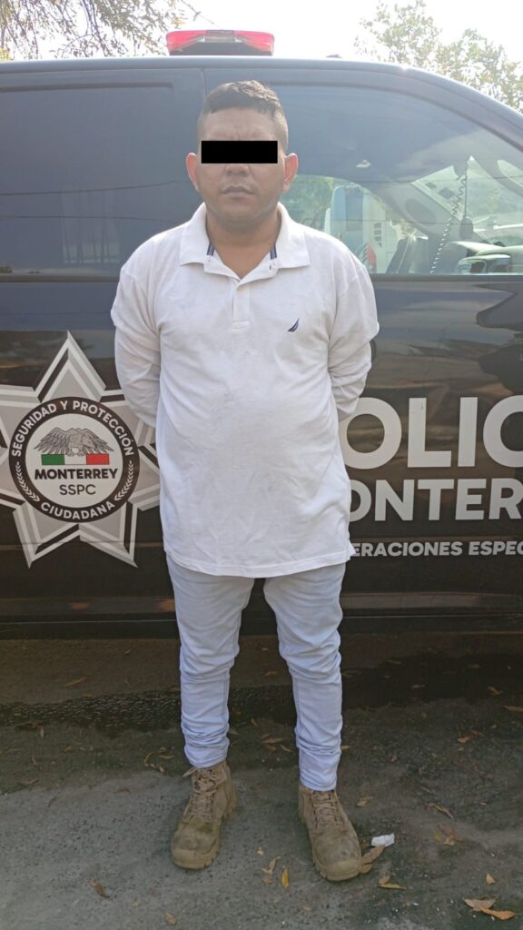 El detenido fue trasladado a las instalaciones de la Policía de Monterrey, donde quedó a disposición de las autoridades competentes para determinar su situación jurídica.