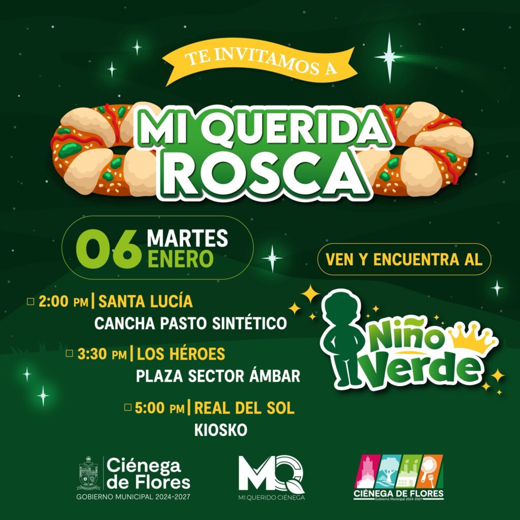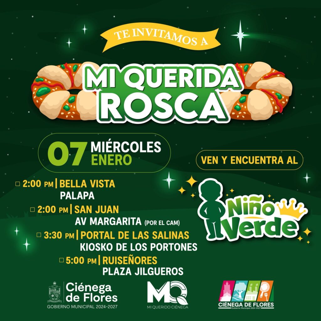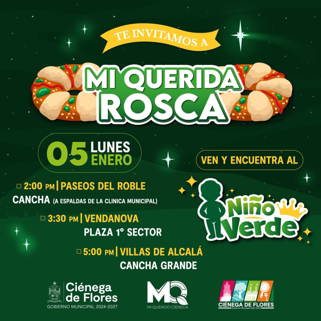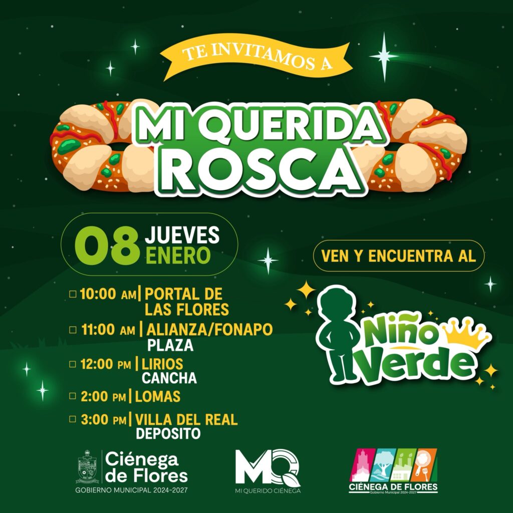 El presidente municipal de Ciénega de Flores, Miguel Quiroga, anunció la realización del evento “Mi querida Rosca”, una celebración organizada con motivo del Día de Reyes que busca fortalecer la convivencia familiar y comunitaria en distintas colonias del municipio.