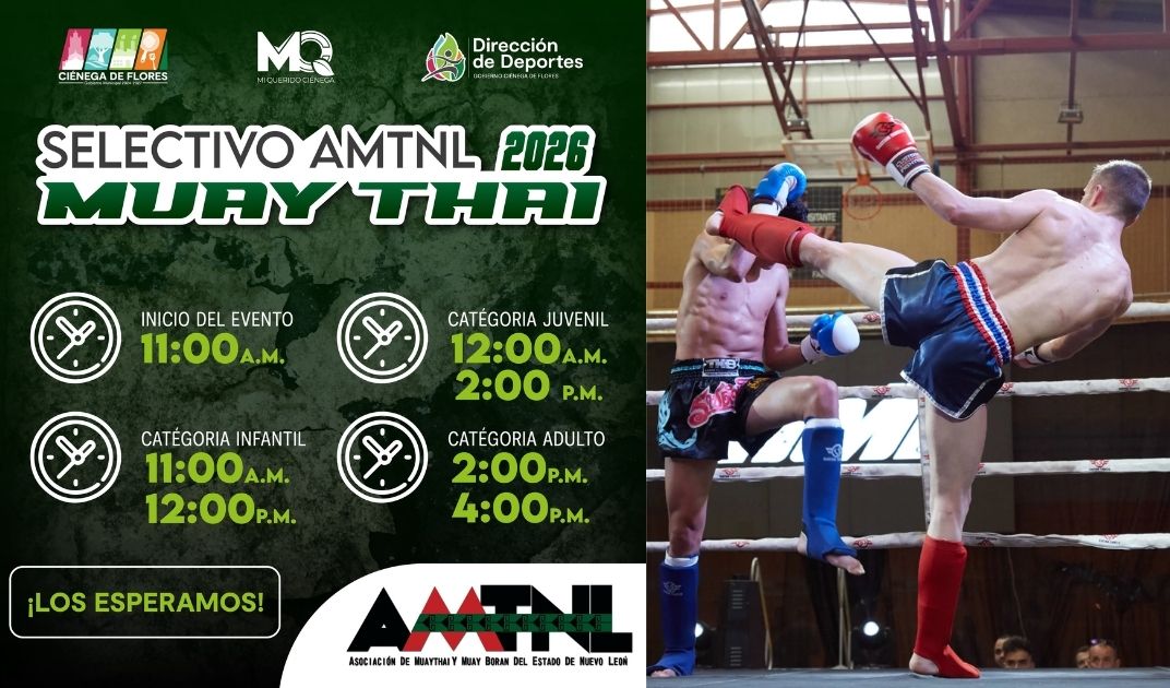 El gobierno municipal invitó a las familias a asistir y vivir la experiencia del Muay Thai, destacando que Ciénega de Flores continúa posicionándose como un municipio activo y comprometido con el crecimiento deportivo.