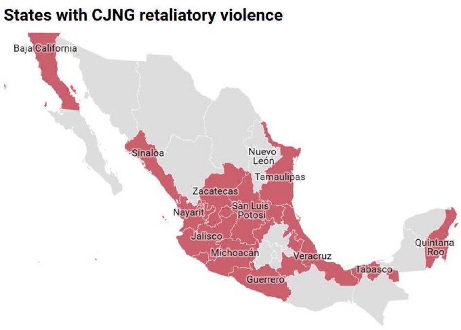 De acuerdo con especialistas, el CJNG tiene presencia en al menos 30 estados.