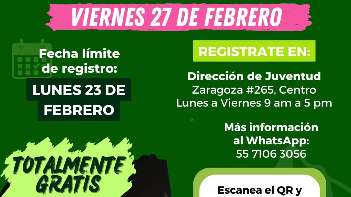 El evento está programado para realizarse el viernes 27 de febrero, con fecha límite de inscripción el 23 de febrero. Podrán participar jóvenes de entre 12 y 21 años de edad, y los interesados pueden solicitar informes e inscribirse a través del número telefónico 55 7106 3056.