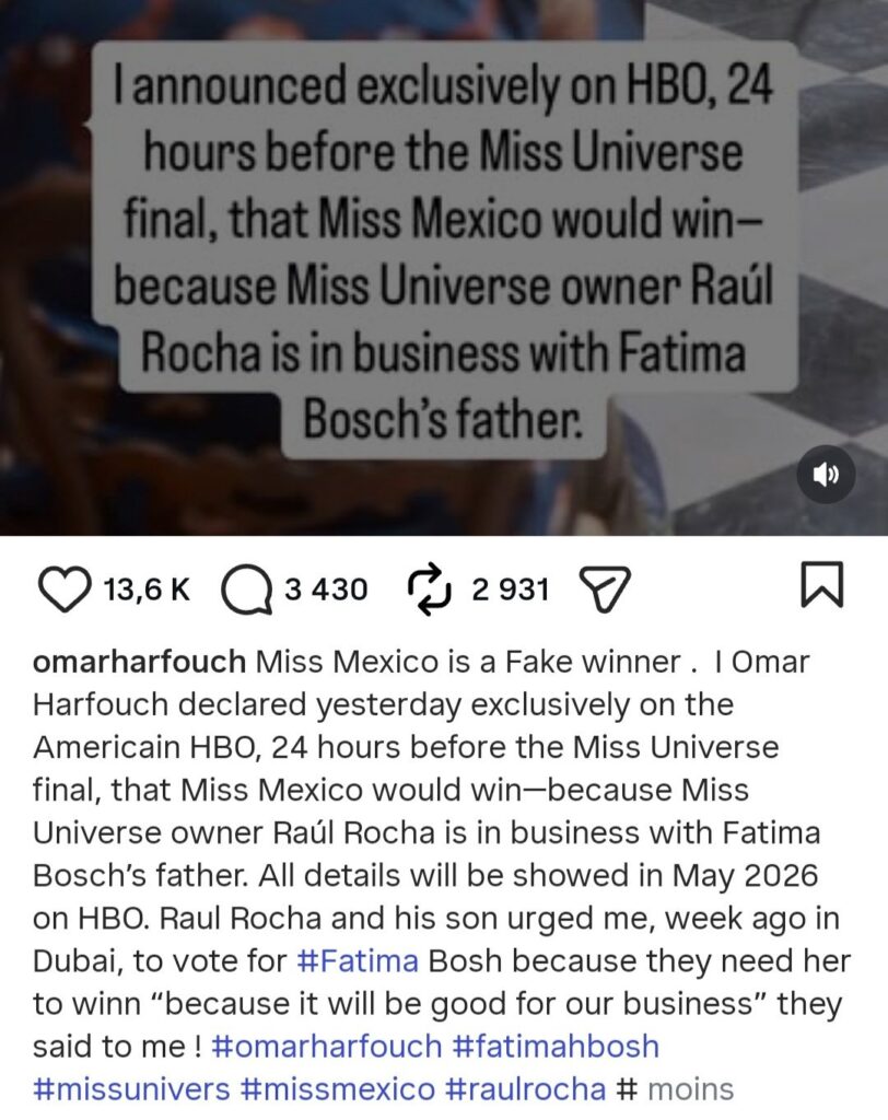 El escándalo que hizo ganar a Fatima Bosch Miss Universo 2025