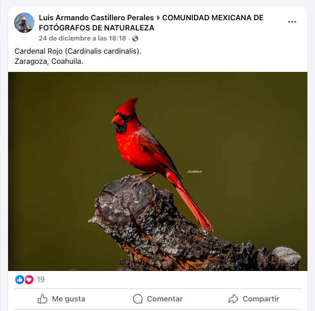 En su perfil, Castillero Perales se identifica como fotógrafo profesional de naturaleza y suele compartir imágenes de diversos ejemplares de fauna, incluyendo ganado bovino. De manera reciente también difundió una fotografía de un Cardenal Rojo captada en el municipio de Zaragoza, Coahuila.