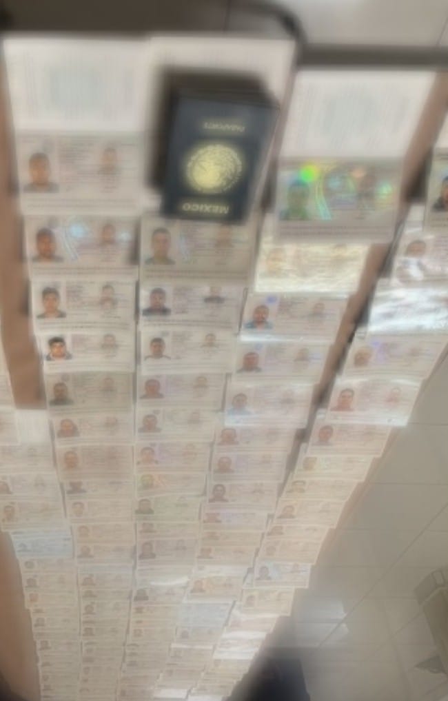 Durante el operativo, encabezado por elementos de la Agencia Estatal de Investigaciones (AEI) junto con personal del Instituto de Criminalística y Servicios Periciales (ICSP), se aseguraron equipos de cómputo, teléfonos celulares y una gran cantidad de documentos personales, entre ellos pasaportes, identificaciones y tarjetas resguardadas en cajas plásticas y folders.