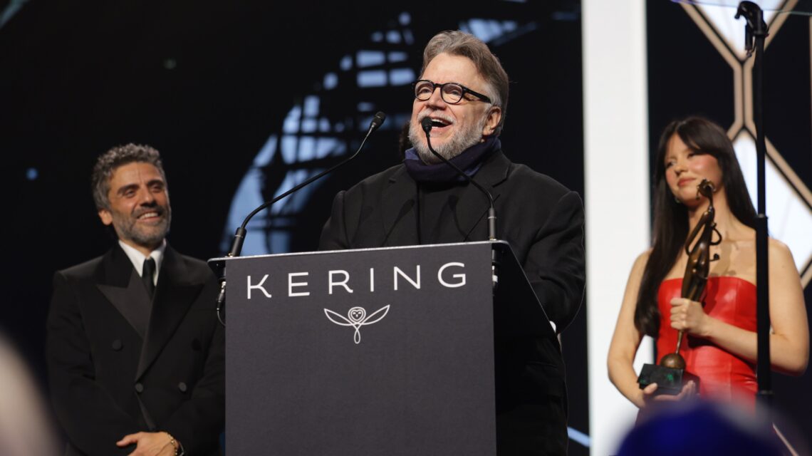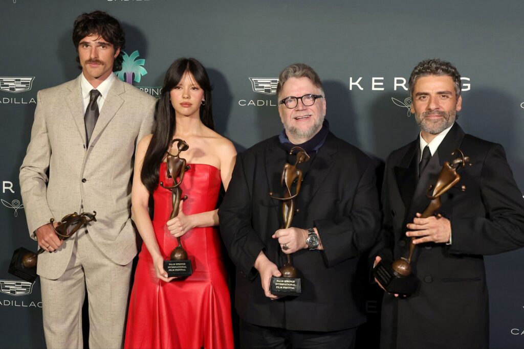 Durante la ceremonia, Del Toro estuvo acompañado por los protagonistas de la cinta: Oscar Isaac, Jacob Elordi y Mia Goth.