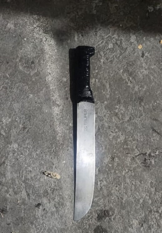 Ante el inminente peligro, los oficiales derribaron la puerta y encontraron a la víctima herida, rodeada de desorden y con el machete tirado en el suelo.