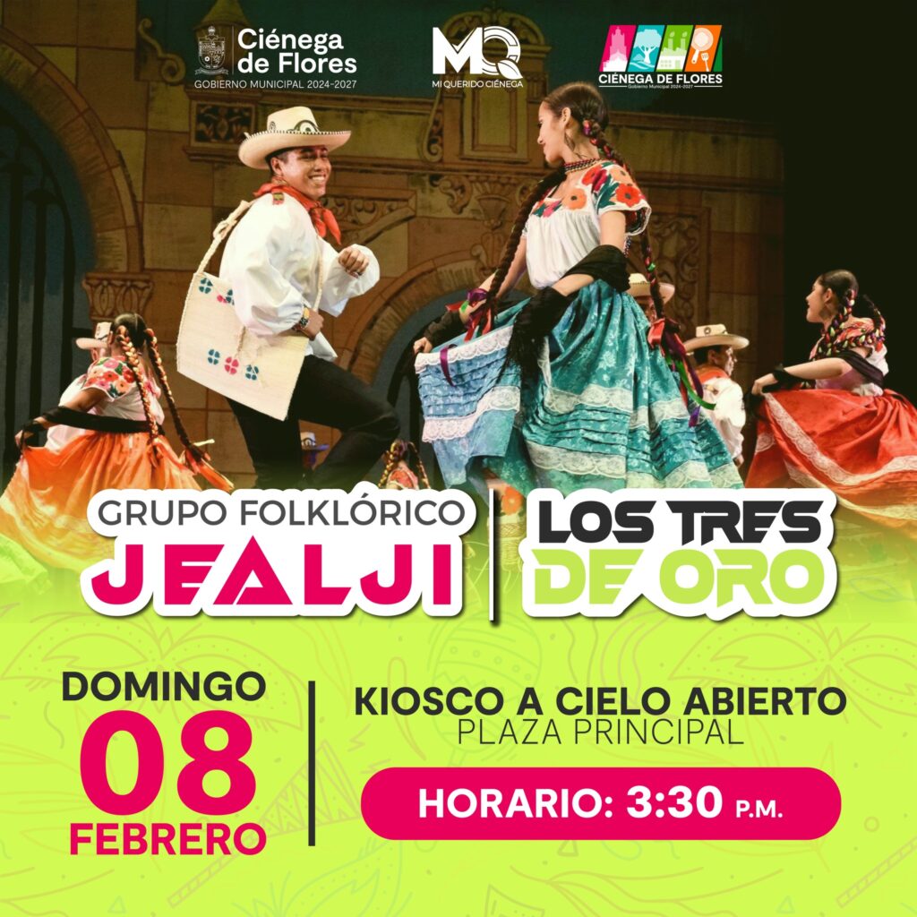 La jornada cultural contó con la participación del Grupo de Danza JEALJI, de la Dirección de Educación y Cultura de Ciénega de Flores, así como del grupo musical Los Tres de Oro, destacando el talento local como un eje estratégico para el fortalecimiento del tejido social, la identidad comunitaria y el sentido de pertenencia.