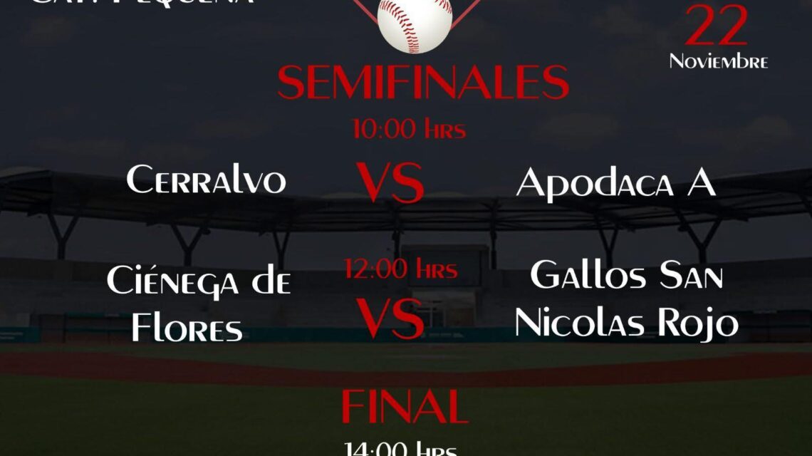 La jornada iniciará con los duelos semifinales entre Cerralvo vs Apodaca A a las 10:00 horas, seguidos del encuentro entre Ciénega de Flores vs Gallos San Nicolás Rojo al mediodía.
