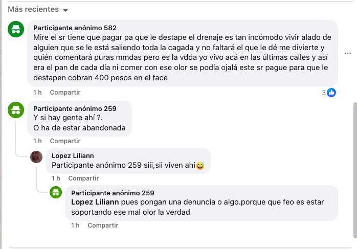 Algunos usuarios sugirieron interponer una denuncia formal, mientras otros relataron experiencias similares en la zona, señalando que vivir junto a un drenaje colapsado vuelve imposible actividades básicas como comer, debido al olor y la presencia constante de insectos.